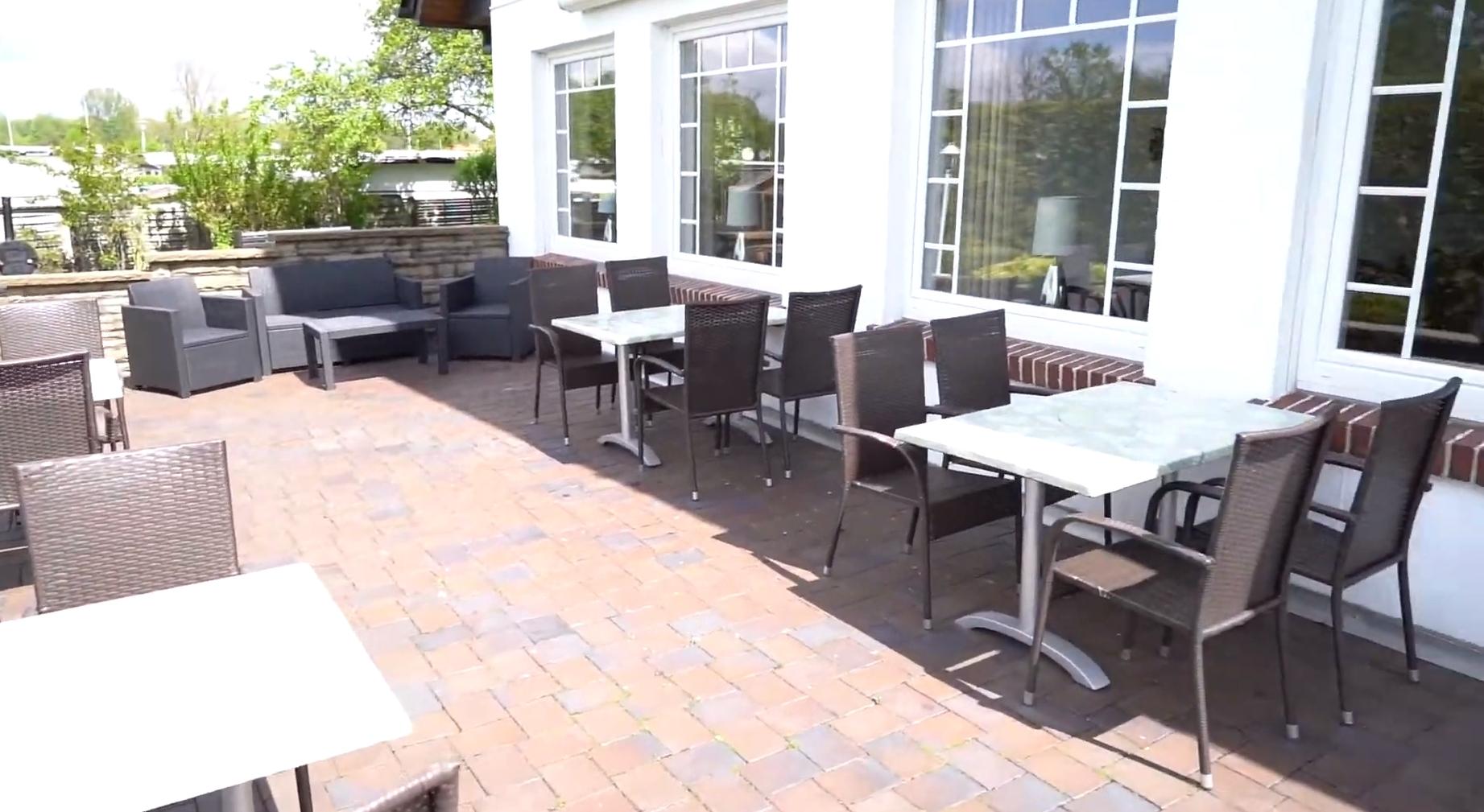 Die große Terrasse bietet einen schönen Seeblick und die Sonne kann von mittags bis abends genossen werden! Hier können ca. bis zu 80 Personen platziert werden.